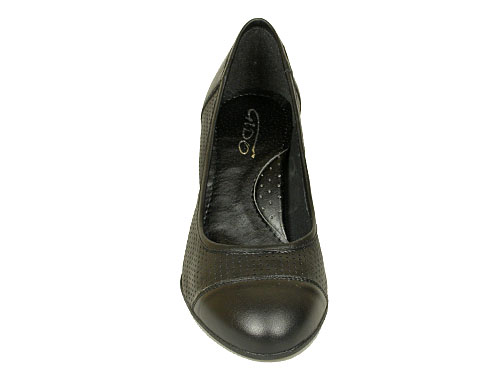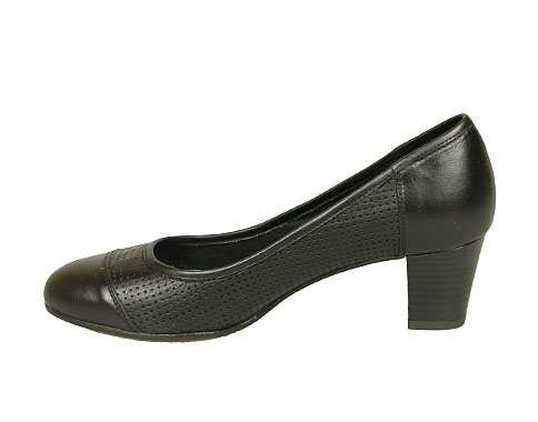 Дамски обувки, изработени в красиво съчетание на гладка и перфорирана естествена кожа. Очарователен модел, с мека, анатомична стелка, който ви гарантира удобство в ежедневието. Ходилото е на стилен ток, с височина 5.5 см.